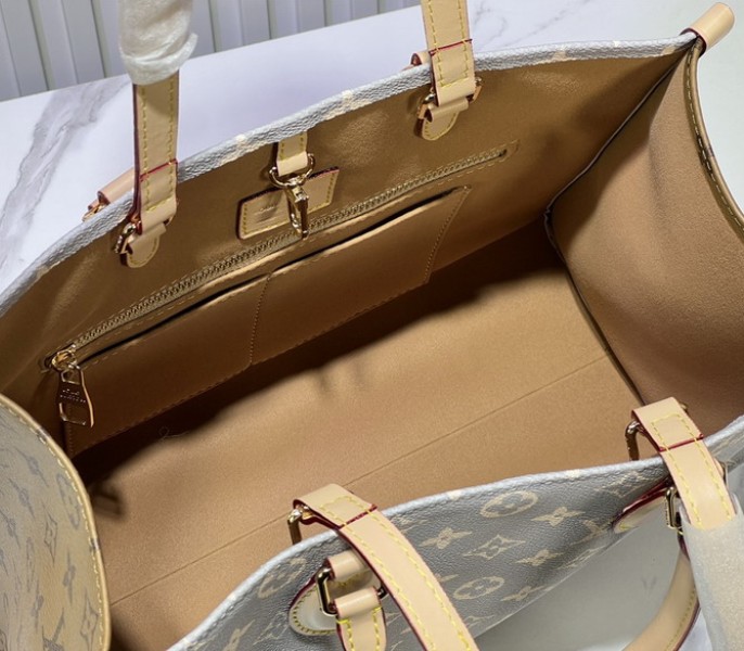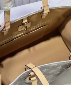 The Louis Vuitton Onthego MM returns for the Fall-Winter 2024 season in the breathtaking Trianon Gray. This sophisticated, neutral hue is the ultimate “quiet luxury” statement, offering a refreshed alternative to traditional earth tones. Whether you are navigating a high-stakes boardroom or strolling through a scenic European plaza, this tote blends iconic heritage with a modern, muted palette that pairs effortlessly with everything from camel wool coats to crisp white linens.