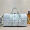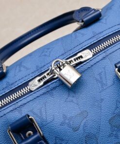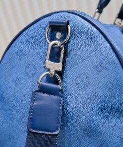 Elevate your travel game with a piece that feels like a breath of fresh, coastal air. The Louis Vuitton Keepall Bandoulière 50 in Navy River Blue is more than just luggage; it’s a statement of effortless luxury. Featuring the stunning Monogram Aquagarden coated canvas, this bag captures a unique, fluid aesthetic that stands out in a sea of traditional browns and blacks. The deep navy hues paired with silver-color hardware offer a crisp, modern vibe that is perfect for the discerning traveler.
