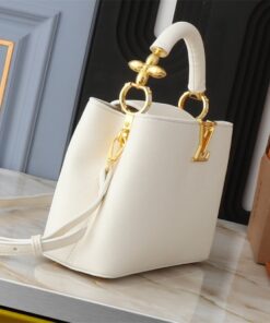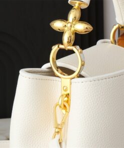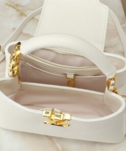 Elevate your wardrobe with a piece that defines modern luxury. The Louis Vuitton Capucines BB in Quartz White is more than just a handbag; it is a masterclass in architectural elegance and refined taste. Crafted from supple Taurillon leather, its crisp white hue is beautifully punctuated by gleaming gold-tone hardware, including the iconic LV Initials and a delicate Monogram Flower on the handle.