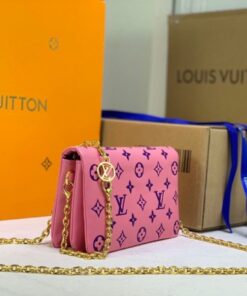 If you’re looking to inject a high-octane dose of color into your wardrobe, the Louis Vuitton Coussin Pochette in this stunning pink and purple gradient is essentially a mood booster you can wear. It’s puffy, it’s bold, and it’s crafted from that buttery monogram-embossed lambskin we all know and love. This isn’t just a bag; it’s a statement piece that refuses to blend into the background.