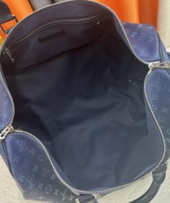 There is a certain confidence that comes with carrying a Louis Vuitton Keepall. The first thing you’ll notice is the supple cowhide-leather trim and the smooth glide of the double zip closure—it feels substantial and expensive. The Monogram Gradient canvas is surprisingly versatile; the navy hue is a refreshing break from the traditional brown monogram, offering a deeper, more mysterious edge that works for both men and women.