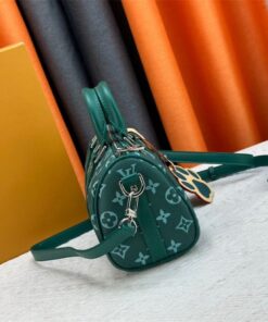 Sliding this bag onto your arm feels like an instant outfit upgrade. The first thing you’ll notice is the vibrant green canvas—it’s bold enough to turn heads but grounded by that timeless Monogram pattern. The structured shape holds everything you need without feeling bulky, and the removable dog-paw charm adds that perfect touch of playful luxury that keeps the look fresh.