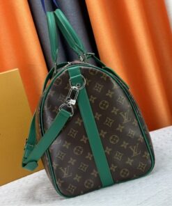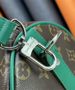 From the moment you feel the Monogram Macassar canvas, you know you’re carrying a masterpiece. The contrast between the dark, masculine canvas and the vibrant Borneo Green cowhide leather is absolutely electric—it gives the classic Keepall a fresh, modern edge that I am obsessed with.