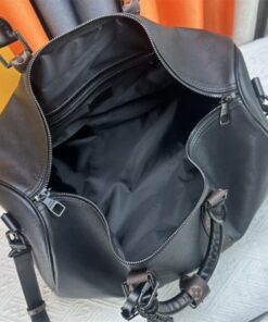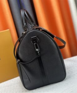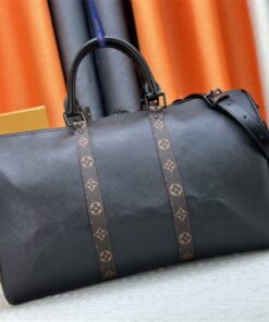 Elevate your travel game with a piece that balances masculine sophistication and iconic heritage. This isn’t just a bag; it’s an investment in your personal brand. Crafted from sleek black Taiga leather and accented with the signature Monogram coated canvas trim, this Keepall 45 is the definition of “quiet luxury” with a bold twist.