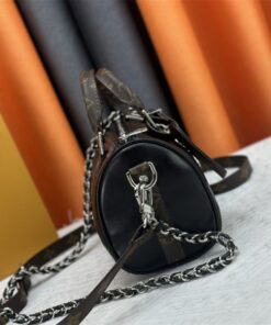 The silver-toned hardware adds a cool, contemporary touch that pops beautifully against the black leather. Inside, the textile lining is durable and soft, and the flat pocket is a lifesaver for keeping your ID or credit cards from getting lost at the bottom of the main compartment. It’s small, yes, but it’s mighty—it holds far more than your average “mini” bag thanks to that classic Keepall width.