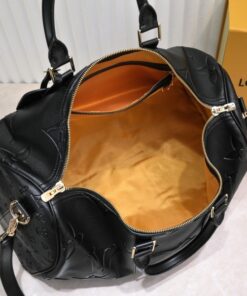 Experience the perfect blend of heritage and modern edge. This stunning Louis Vuitton Keepall Bandoulière 45 is reimagined in Monogram Empreinte Giant leather, offering a sophisticated, tactile finish that turns heads while remaining timelessly elegant in deep black.