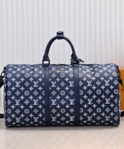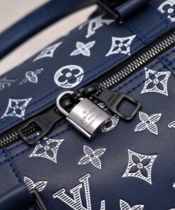 Elevate your travel game with a piece that whispers luxury rather than shouting it. The Louis Vuitton Monogram Shadow Keepall Bandoulière 50 in Navy Blue is the personification of “quiet luxury” for the modern traveler. Dressed in supple Monogram Shadow leather, this bag features the iconic pattern subtly embossed into a deep, moody navy that transitions perfectly from the boardroom to the jet bridge.