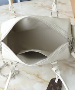 “Can we talk about the ‘East-West’ silhouette obsession? Because this Optic White Speedy Cargo is absolutely winning. It’s like the classic Speedy went to a rock concert and came back with a chic, neo-rock upgrade. The glossy lambskin feels like butter, and those silver-toned cargo pockets? Total game changer for quick access to your lip gloss or AirPods. Whether I’m styling it with an oversized blazer for a meeting or a silk slip dress for dinner, it adds that ‘cool girl’ energy effortlessly. It’s structured yet soft, giving you that high-end look without feeling stiff. Plus, the white is so crisp—it literally glows under city lights!”