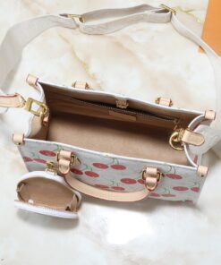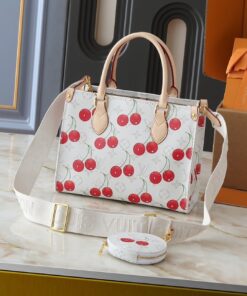 If you are looking for that perfect blend of “classic luxury” and “playful chic,” the Louis Vuitton Monogram Cherry Onthego PM is about to become your new obsession. This isn’t just another tote; it is a statement piece that breathes fresh life into the iconic LV monogram with a crisp white backdrop and vibrant cherry accents. It’s compact, structured, and undeniably sophisticated.