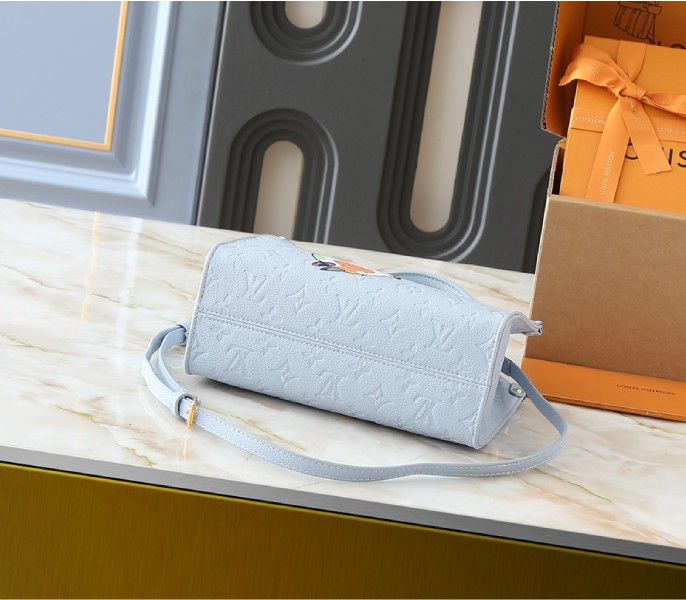 Step into the new season with a piece that feels like a breath of fresh air. This Louis Vuitton OnTheGo PM in the stunning Washed Blue shade is a masterclass in understated luxury. Crafted from the iconic Monogram Empreinte embossed grained leather, this “Bijou Edition” adds a touch of jewelry-inspired elegance to a silhouette we already know and love. It’s the perfect blend of structural sophistication and soft, dreamy color.