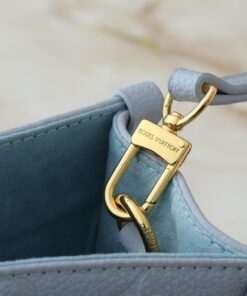 There is something incredibly tactile about the Empreinte leather that you just have to feel to appreciate. It’s supple yet durable, and the grained texture means you don’t have to baby it as much as smooth hides. Carrying the OnTheGo PM feels like a dream; whether you’re using the chic double top handles for a “lady-who-lunches” vibe or throwing it crossbody with the adjustable strap for a hands-free day of exploring, it adapts to your rhythm. The gold-toned hardware pops against the blue like sun on water, giving it that “Bijou” jewelry feel that elevates even the simplest t-shirt and jeans combo. It’s spacious, functional, and undeniably cool.